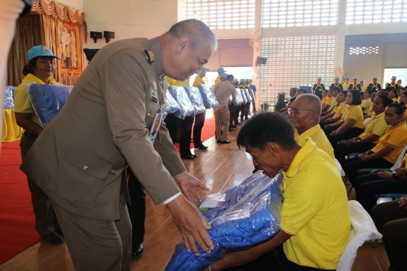 จากนั้น องคมนตรีและคณะ เดินทางลงพื้นที่เยี่ยมเยียนให้กำลังใจราษฎรผู้สูงอายุ และผู้พิการที่ประสบภัยหนาวในพื้นที่อำเภอวาปีปทุม พร้อมมอบผ้าห่มกันหนาวพระราชทาน และชุดยาเวชภัณฑ์ จำนวน ๓ ชุด รวมทั้งสิ้น ๒,๕๐๐ ชุด