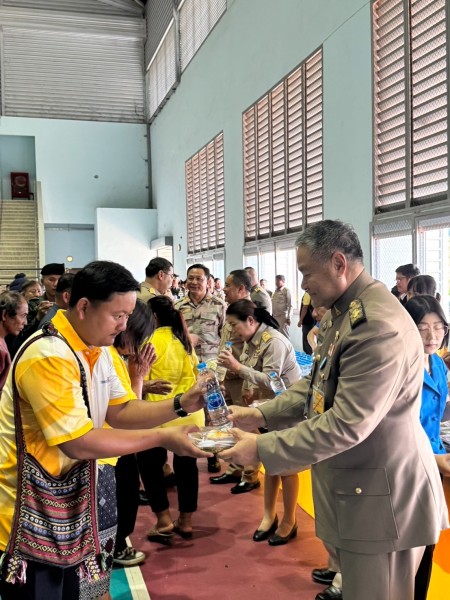 โดยมีนายเอกวิทย์ มีเพียร ผู้ว่าราชการจังหวัดแม่ฮ่องสอน และนายอำเภอแม่ฮ่องสอน พร้อมทั้งราษฎรผู้ประสบอุทกภัย เป็นตัวแทนรับมอบสิ่งของพระราชทาน จำนวน ๙๙๕ ครัวเรือน และถุงพระราชทานสำหรับเด็กแรกเกิดถึง ๒ ปี จำนวน ๒๖๒ ชุด ณ สนามกีฬากลางจังหวัดแม่ฮ่องสอน