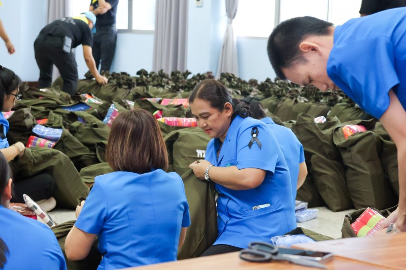 วันนี้ (๑๑ ธ.ค.๖๘) เวลา ๐๙.๐๐ น. พลเรือเอก พงษ์เทพ หนูเทพ องคมนตรี ประธานกรรมการบริหารมูลนิธิราชประชานุเคราะห์ ในพระบรมราชูปถัมภ์ ตรวจเยี่ยมการบรรจุถุงพระราชทานเครื่องอุปโภคที่จำเป็น สำหรับเตรียมขนส่งไปที่ศูนย์พักพิง เพื่อนำไปมอบแก่ผู้ที่ได้รับผลกระทบจากเหตุการณ์ความไม่สงบในพื้นที่ชายแดน ไทย-กัมพูชา อพยพจากที่พักอาศัยมาที่ศูนย์พักพิง จังหวัดจันทบุรี และจังหวัดตราด จำนวน ๑,๕๐๐ ชุด และถุงพระราชทานสำหรับเด็ก จำนวน ๑๕๐ ชุด