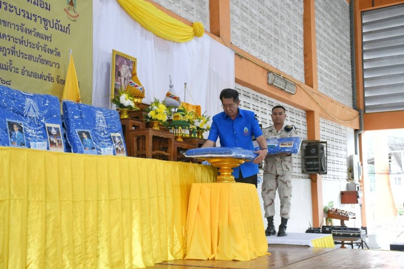 นายสมชัย เลิศประสิทธิพันธ์ ผู้ว่าราชการจังหวัดแพร่ ประธานกรรมการมูลนิธิราชประชานุเคราะห์ ประจำจังหวัดแพร่ เป็นประธานในพิธีเชิญผ้าห่มกันหนาวพระราชทานพร้อมชุดยาเวชภัณฑ์ มอบแก่ราษฎรผู้ประสบภัยหนาว ในพื้นที่ ๘ อำเภอ จังหวัดแพร่ จำนวน ๒,๕๐๐ ชุด ณ ศูนย์กีฬาในร่มเทศบาลตำบลแม่จั๊วะ อำเภอเด่นชัย จังหวัดแพร่