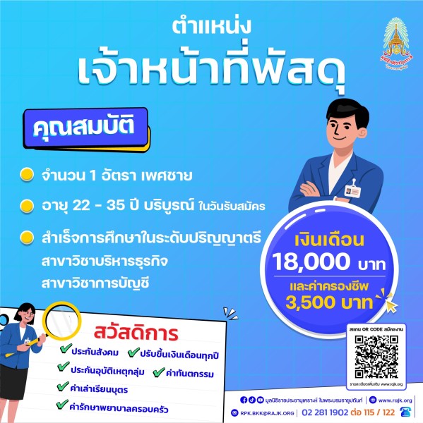 📣ประกาศรับสมัครงานมูลนิธิราชประชานุเคราะห์ ในพระบรมราชูปถัมภ์ รับสมัครงานบุคคลทั่วไป จำนวน 6 อัตรา