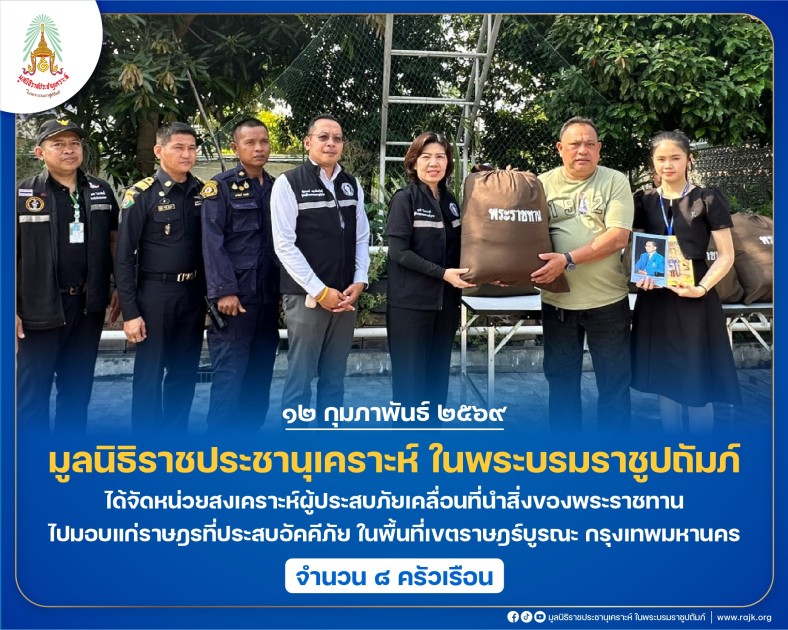 มูลนิธิราชประชานุเคราะห์ ในพระบรมราชูปถัมภ์ ได้จัดหน่วยสงเคราะห์ผู้ประสบภัยเคลื่อนที่นำสิ่งของพระราชทานไปมอบแก่ราษฎรที่ประสบอัคคีภัย ในพื้นที่เขตราษฎร์บูรณะ กรุงเทพมหานคร จำนวน ๘ ครัวเรือน เพื่อเป็นขวัญและกำลังใจในการดำรงชีวิตต่อไป ณ ซอยราษฎร์บูรณะ ๒๐