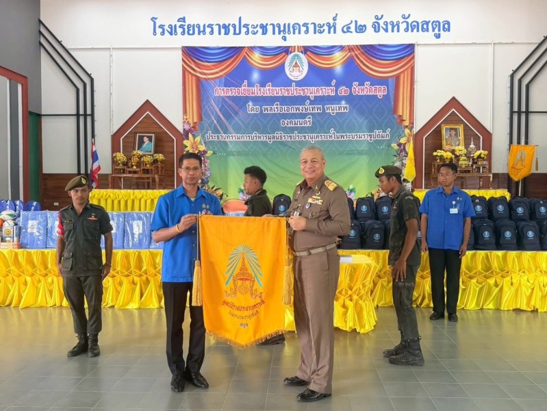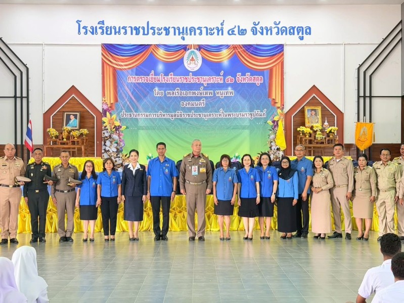 พลเรือเอก พงษ์เทพ หนูเทพ องคมนตรี ประธานกรรมการบริหารมูลนิธิราชประชานุเคราะห์ ในพระบรมราชูปถัมภ์ พร้อมคณะ เดินทางไปตรวจเยี่ยมโรงเรียนราชประชานุเคราะห์ ๔๒ อำเภอเมืองสตูล จังหวัดสตูล