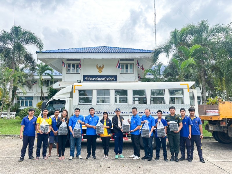 พร้อมกันนี้ได้สนับสนุนข้าวกล่อง จำนวน ๓,๐๐๐ กล่อง โดยนำไปมอบที่องค์การบริหารส่วนตำบลบางกล่ำ จังหวัดสงขลา