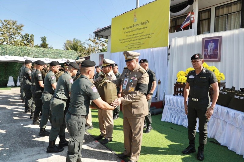 โอกาสนี้ องคมนตรีและคณะ เดินทางไปยังกองร้อยตำรวจตระเวนชายแดนที่ ๓๔๕ ตำบลแม่ระมาด อำเภอแม่ระมาด จังหวัดตาก เพื่อเชิญสิ่งของพระราชทานมอบให้แก่ผู้ปฏิบัติงานด้านความมั่นคง จำนวน ๔๕ ถุง