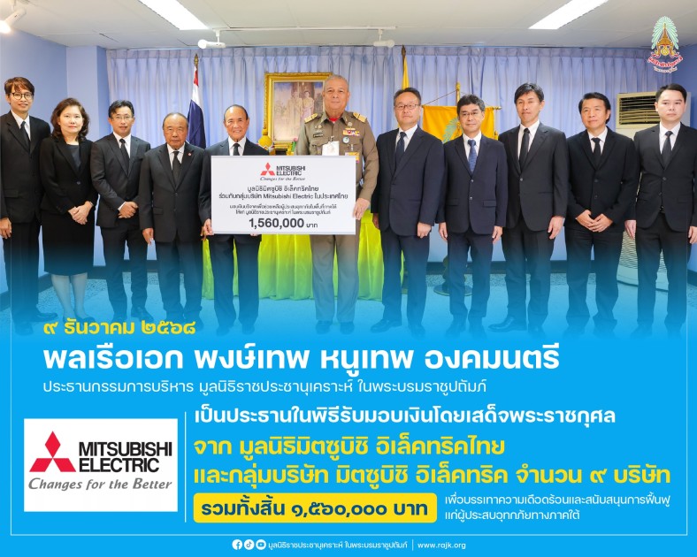 โดยนายอาสา สารสิน ประธานกรรมการมูลนิธิมิตซูบิชิ อิเล็คทริคไทย รวมทั้งสิ้น ๑,๕๖๐,๐๐๐ บาท เพื่อบรรเทาความเดือดร้อนและสนับสนุนการฟื้นฟูแก่ผู้ประสบอุทกภัยทางภาคใต้