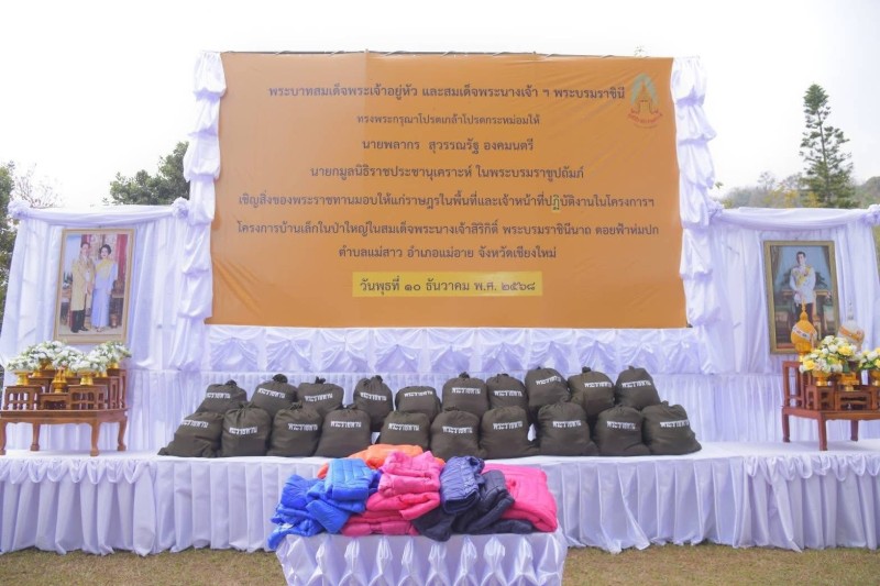โอกาสนี้ องคมนตรีและคณะเดินทางไปยังโครงการบ้านเล็กในป่าใหญ่ในสมเด็จพระนางเจ้าสิริกิติ์ พระบรมราชินีนาถ ดอยฟ้าห่มปก ตำบลแม่สาว อำเภอแม่อาย จังหวัดเชียงใหม่ เพื่อเชิญสิ่งของพระราชทาน ประกอบด้วย เสื้อกันหนาวเด็ก มอบให้แก่เด็กในพื้นที่โครงการ จำนวน ๖๐ ตัว และถุงพระราชทาน มอบให้แก่ราษฎรและผู้ปฏิบัติงานในพื้นที่โครงการฯ จำนวน ๕๖ ถุง