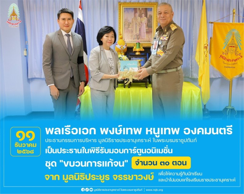 วันพฤหัสบดี ที่ ๑๑ ธันวาคม ๒๕๖๘ เวลา ๑๑.๐๐ น. ณ สำนักงานมูลนิธิราชประชานุเคราะห์ฯ
