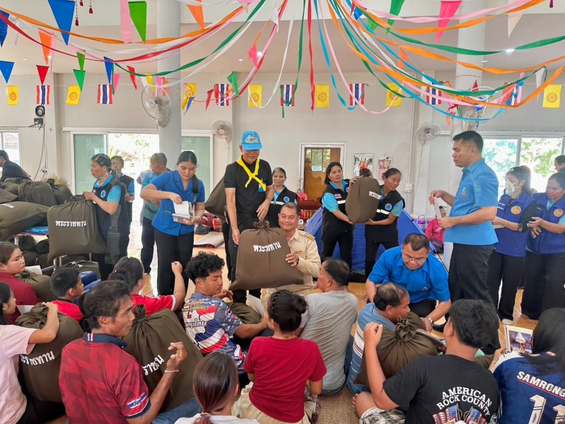 นายวิลาศ รุจิวัฒนพงศ์ รองประธานฝ่ายบรรเทาทุกข์ และคณะเจ้าหน้าที่มูลนิธิราชประชานุเคราะห์ ในพระบรมราชูปถัมภ์ มอบถุงพระราชทานเครื่องอุปโภคที่จำเป็น ถุงพระราชทานสำหรับเด็ก และเต็นท์นอน แก่ผู้ที่ได้รับผลกระทบจากเหตุการณ์ความไม่สงบในพื้นที่ชายแดน ไทย-กัมพูชา อพยพจากที่พักอาศัยมาที่ศูนย์พักพิง จังหวัดศรีสะเกษ จำนวน ๒,๐๐๐ ชุด ถุงพระราชทานสำหรับเด็ก จำนวน