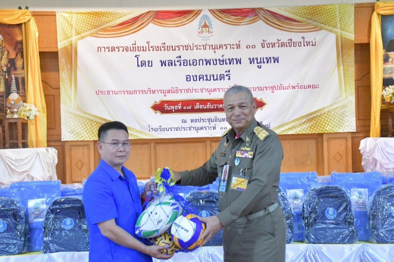 พลเรือเอก พงษ์เทพ หนูเทพ องคมนตรี ประธานกรรมการบริหารมูลนิธิราชประชานุเคราะห์ ในพระบรมราชูปถัมภ์ พร้อมคณะ เดินทางไปตรวจเยี่ยมโรงเรียนราชประชานุเคราะห์ ๓๑ อำเภอแม่แจ่ม จังหวัดเชียงใหม่