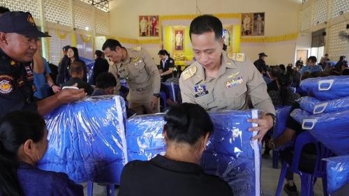 โดยมีนายอำเภอ เป็นผู้แทนรับมอบผ้าห่มกันหนาวพระราชทาน พร้อมชุดยาและเวชภัณฑ์ เพื่อนำไปมอบแก่ประชาชนในพื้นที่ประสบภัยหนาวต่อไป