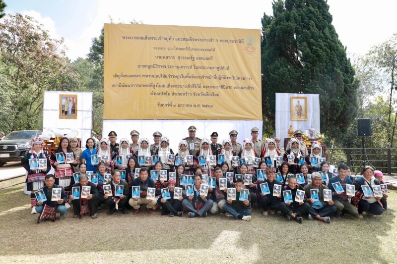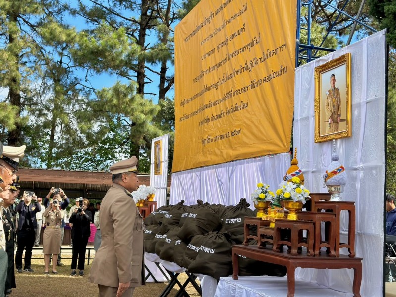 ประธานอนุกรรมการติดตามและขับเคลื่อนโครงการอันเนื่องมาจากพระราชดำริในพื้นที่ภาคเหนือ พร้อมด้วยนางสุพร ตรีนรินทร์ เลขาธิการ กปร. เจ้าหน้าที่มูลนิธิราชประชานุเคราะห์ ในพระบรมราชูปถัมภ์ ที่ปรึกษาคณะอนุกรรมการฯ และคณะอนุกรรมการฯ เดินทางไปยังโครงการสถานีพัฒนาเกษตรที่สูงในสมเด็จพระนางเจ้าสิริกิติ์ พระบรมราชินีนาถ ดอยม่อนล้าน ตำบลป่าตุ้ม อำเภอพร้าว จังหวัดเชียงใหม่ เพื่อเชิญสิ่งของพระราชทานจากพระบาทสมเด็จพระเจ้าอยู่หัว และสมเด็จพระนางเจ้าฯ พระบรมราชินี ไปมอบให้แก่ราษฎรและผู้ปฏิบัติงานในพื้นที่โครงการฯ ประกอบด้วย ถุงพระราชทาน จำนวน ๑๔๐ ถุง และเสื้อกันหนาวเด็ก จำนวน ๗๔ ตัว