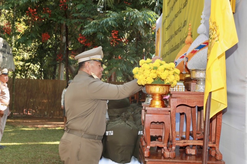 จากนั้น องคมนตรีและเดินทางไปยังวัดห้วยซลอบ ตำบลห้วยผา อำเภอเมืองแม่ฮ่องสอน จังหวัดแม่ฮ่องสอน เพื่อเชิญสิ่งของพระราชทานไปมอบแก่ราษฎรและผู้ปฏิบัติงานในพื้นที่โครงการฯ ประกอบด้วย เสื้อกันหนาวเด็ก จำนวน ๑๒๓ ตัว และถุงพระราชทาน จำนวน ๑๑๔ ถุง