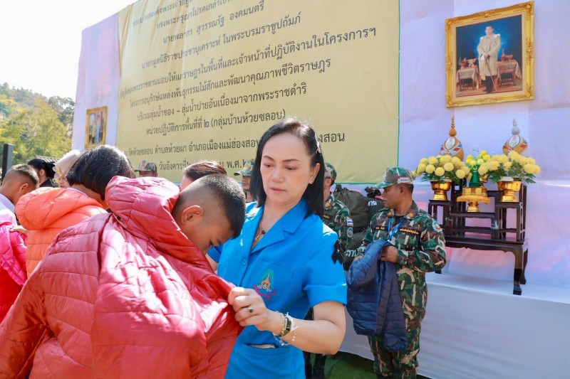 นายพลากร สุวรรณรัฐ องคมนตรี นายกมูลนิธิราชประชานุเคราะห์ ในพระบรมราชูปถัมภ์ ประธานอนุกรรมการติดตามและขับเคลื่อนโครงการอันเนื่องมาจากพระราชดำริในพื้นที่ภาคเหนือ พร้อมด้วยนายศุภรัชต์ อินทราวุธ รองเลขาธิการ กปร. เจ้าหน้าที่มูลนิธิราชประชานุเคราะห์ ในพระบรมราชูปถัมภ์ ที่ปรึกษาคณะอนุกรรมการฯ และคณะอนุกรรมการฯ เดินทางไปยังโครงการพระราชดำริปางตอง ๓ (หมอกจำแป่ - แม่สะงา) บ้านห้วยขาน ตำบลหมอกจำแป่ อำเภอเมืองแม่ฮ่องสอน จังหวัดแม่ฮ่องสอน เพื่อเชิญสิ่งของพระราชทานจากพระบาทสมเด็จพระเจ้าอยู่หัว และสมเด็จพระนางเจ้า ฯ พระบรมราชินี ไปมอบแก่ราษฎรและผู้ปฏิบัติงานในพื้นที่โครงการ ได้แก่ เสื้อกันหนาวสำหรับเด็ก จำนวน ๑๐๒ ตัว และถุงพระราชทาน จำนวน ๑๒๘ ถุง