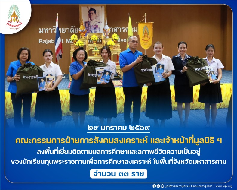 คณะกรรมการฝ่ายการสังคมสงเคราะห์ เจ้าหน้าที่มูลนิธิ ฯ ลงพื้นที่เยี่ยมติดตามผลการศึกษาและสภาพชีวิตความเป็นอยู่ของนักเรียนทุนพระราชทานเพื่อการศึกษาสงเคราะห์ ในพื้นที่จังหวัดมหาสารคาม
